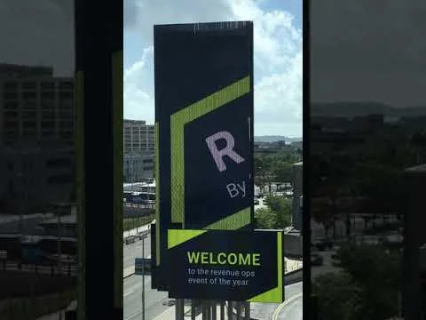 InsightSquared’s second annual conference was hosted at the Westin Boston Waterfront conference center. As part of the many design needs for signage I got to create the motion graphics for the large marquee in front of the building to welcome guests. The template the Westin sent over was unique. The marquee itself has two faces that wrap and are composed of four major screens. The large vertical “screens” are actually LED poles so I had to experiment with what level of detail they could recreate legibly. Another constraint was that the two traditional screens couldn’t feature any motion due to some Boston law or ordinance. It turned out great and looked fantastic in person.